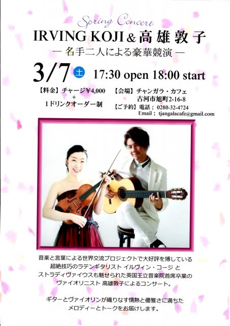 音楽と言葉による世界交流プロジェクトで大好評を博しているラテンギタリスト イルヴィン・コージと英国王立音楽院首席卒業のヴァイオリニスト高雄敦子によるスプリング・コンサート。情熱と優雅さに満ちたメロディーとトークをお届けし […]